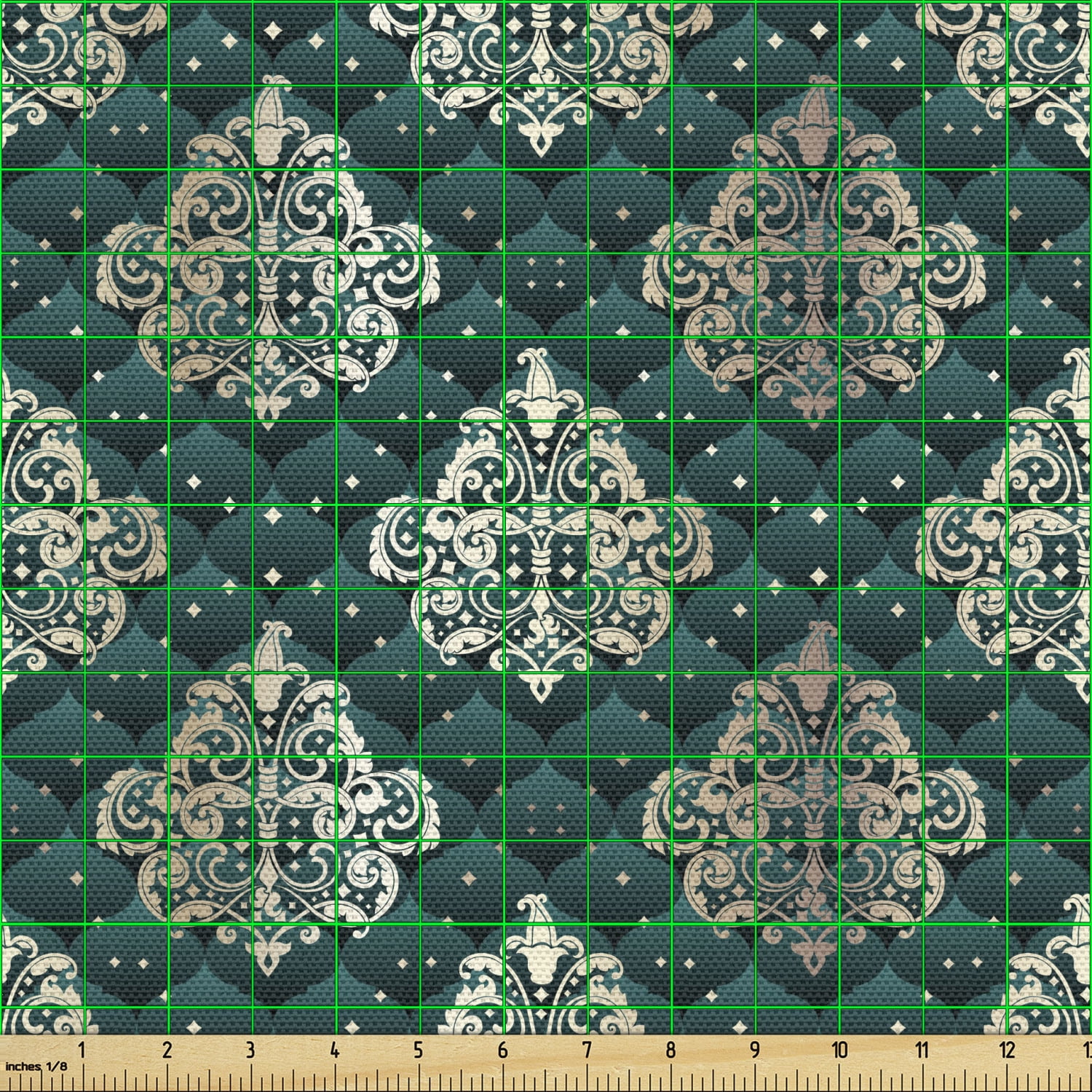 Damask Fabric By The Yard French Pattern Inspired By Rococo Era Designs Intricate Renaissance Motifs Upholstery Fabric For Dining Chairs Home Decor Accents Dark Teal Eggshell By Ambesonne Walmart Com