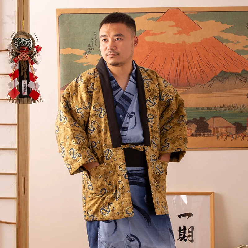 Winter Warm Japanese Kimono Traditional Cotton Hanten Folk Style Thicken Haori Jacket Harajuku Kimono Yukata Male Lounge Pajama Asia Pacific Islands Clothing Aliexpress
